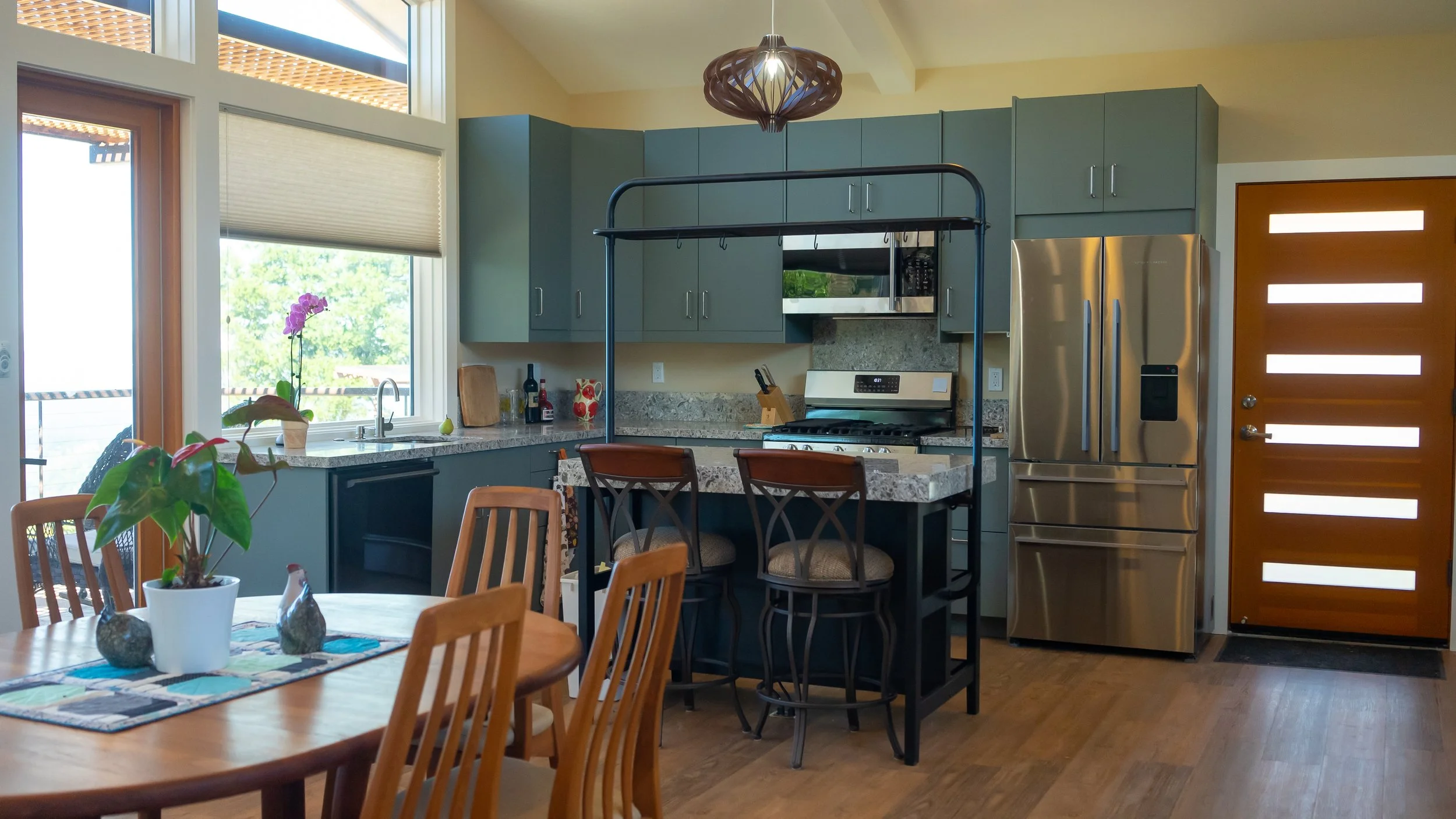 Crafter’s Studio We created a custom crafting studio with a garage/workshop below. This is the perfect multi-purpose space to accommodate both daily creative work and weekend guests.
